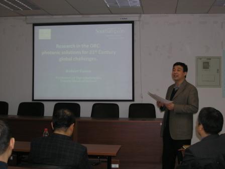 2012年2月28日上午10:30在新主楼B707教室,来自南安普顿大学ORC研究中心的Robert Eason教授为仪器科学与光电工程学院的师生们做了一场名为“photonic for 21st century global challenges”的学术报告会。院长房建成教授、副院长张春熹教授、光电所的宋凝芳研究员等参加了报告会。