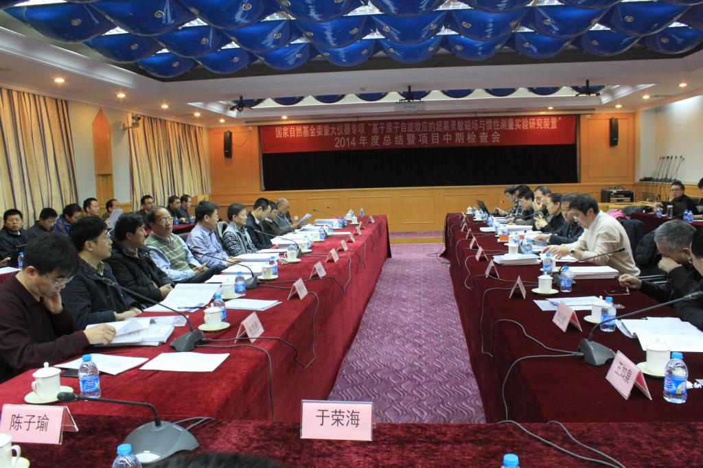 会上,房建成教授介绍了2014年项目总体进展情况,重申了项目的总体目标任务,确定了阶段性目标以及对各参研单位的总体要求,并汇报了基于原子自旋效应的超高灵敏磁场与惯性测量实验研究装置第一代的总体设计方案及突破的关键技术等。然后其它各参研单位就各自承担课题的2014年度进展任务等作了详细进展汇报。与会领导和专家充分肯定了该项目2014年度研究进展以及取得的阶段性成果,并就仪器研制工作以及项目研究过程中可能遇到的困难展开了深入的交流与讨论,为下一步项目的顺利实施和组织管理提出了很好的建议。本次年度总结交流会的召开对该项目的顺利实施具有重要的指导意义。