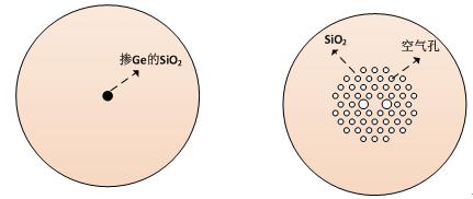 传统光纤截面示意图 光子晶体光纤截面示意图
