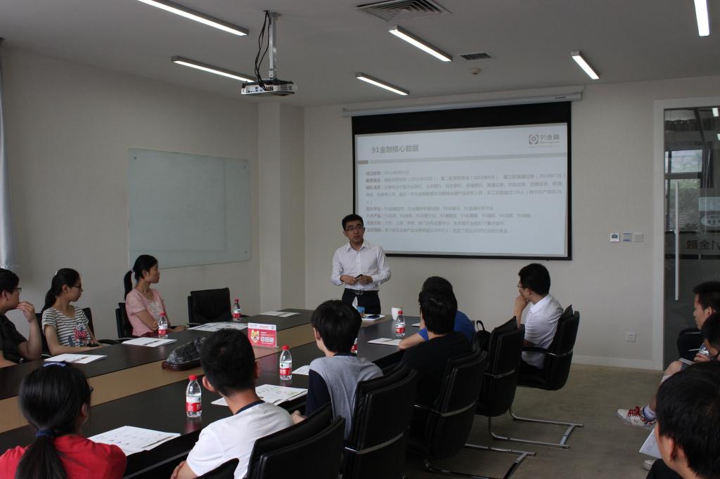 上午9时30分同学们到达91金融总部,我校校友、91金融CEO许泽玮热烈欢迎大家的到来,并向同学们回顾了自己的成长历程,介绍了91金融的公司架构和业务种类,详细讲解了91金融由开始创建到发展到今天所经历的一些关键性事件,例如91金融3轮VC(风险投资)对91金融发展的影响,强调在不同阶段选择不同的VC是很重要的,并在最后透露了一下自己将来的战略布局。同学们全方位地了解了91金融的发展历程,在公司一步步发展壮大中深深地感受到了一个企业家的魅力。