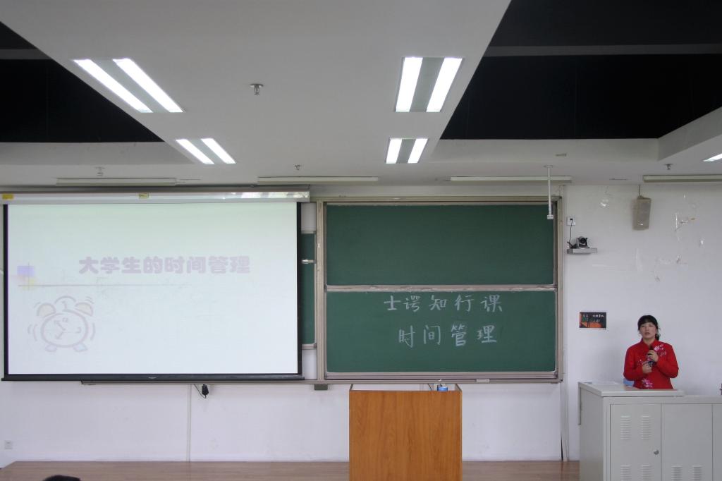 张凤老师长期从事学生潜能开发、大学生职业生涯规划、就业咨询和发展性心理辅导,经验丰富而且为人亲切、贴近学生。报告中,张老师首先通过具体实例指出无目标地安排大学生活是大学生存在的通病,而时间是一种特殊的资源,具有唯一性,因此大学生有必要对时间做好管理和规划,为实现职业生涯和人生目标确定行动时间和方案。随后,张老师又在如何提高提高效率的问题上提出了几点建议,1.明确目标2.分清轻重3.制定计划4.立即行动5.学会授权6.懂得说不7.改善拖延,并鼓励同学们将目标、计划落实到实践中。