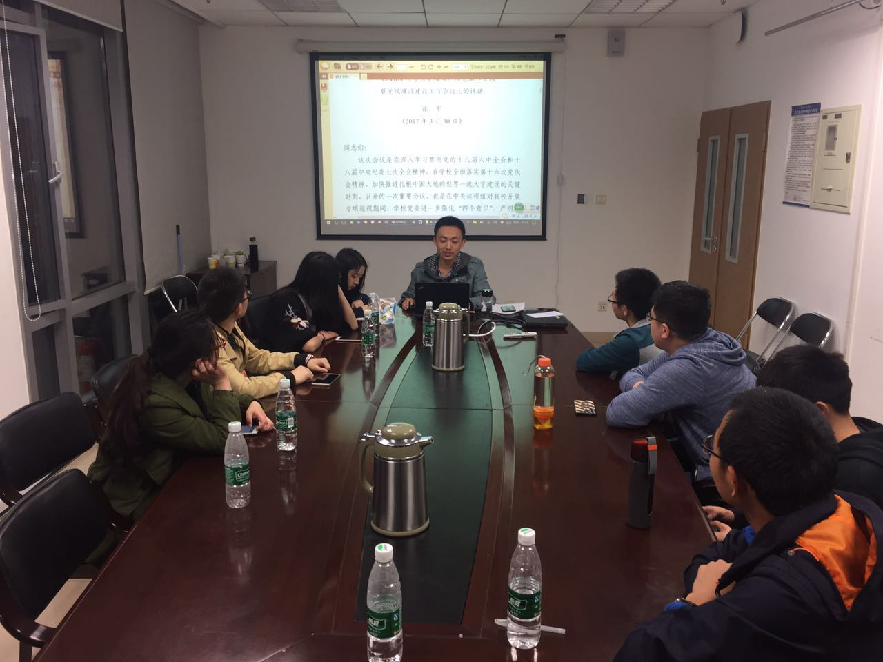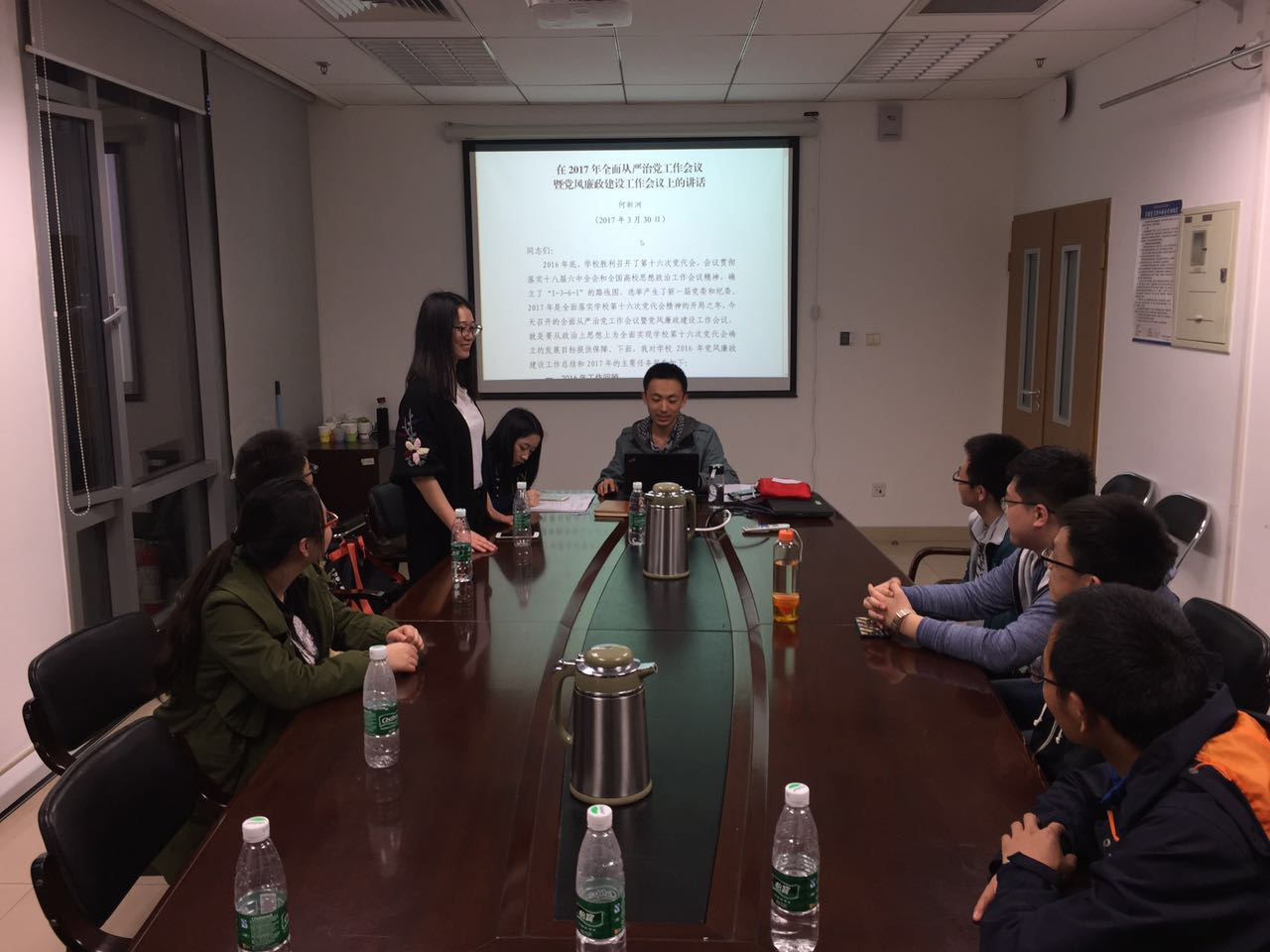 2017年4月7日晚,为贯彻学习全面从严治党暨党风廉政建设工作会议上张军和何新洲同志的讲话精神,16级遥感党支部在新主楼b828会议室召开了党员学习大会,会议支部书记侯主持