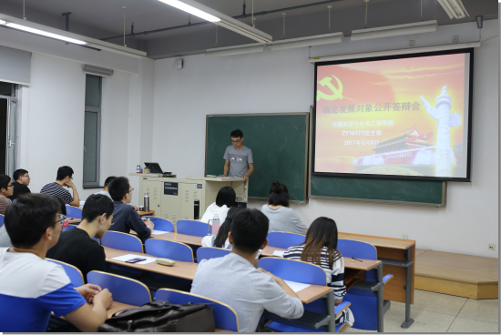 2017年5月8日晚上8点,仪器科学与光电工程学院ZY16171党支部于新主楼B206组织召开了2016-2017学年第二学期确定发展对象公开答辩会。ZY16171党支部所有成员、9名发展对象预备人选和6位普通同学参加了此次答辩会,会议由支部书记马福同志主持。