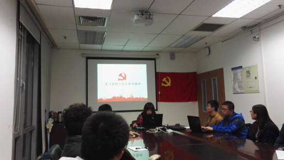 会议第一项,由支部党员分享自己对十八大以来的国家发展成果的所见所感。郝嘉麟同志,从“四个全面”战略布局展开,以西成高铁、西安地铁等轨道交通网络的迅猛发展、关中天水经济带的建设为例分享了自己家乡陕西省十八大以来的变化;陈远泽同志,从全面依法治国展开,以多个高官落马的案例来说明法治建设的日益加强;李子昂同志和代保铭同志从生态文明建设方面,以家乡生态环境的日益改善来说明环保工作初见成果;张洲同志,从科技发展方面以电网建设的特高压传输技术为例说明了十八大以来的科技发展日新月异。