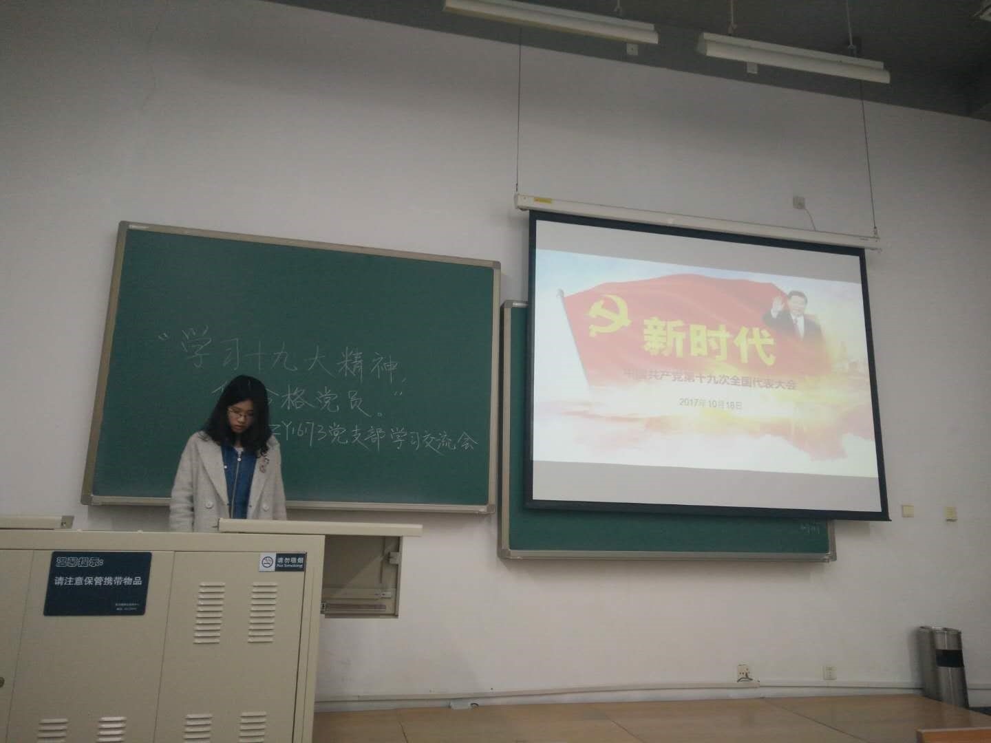 2017年11月1日晚上9点30分,仪器光电学院ZY16173班党支部成员在新主楼B119开展了十九大精神学习交流讨论会。