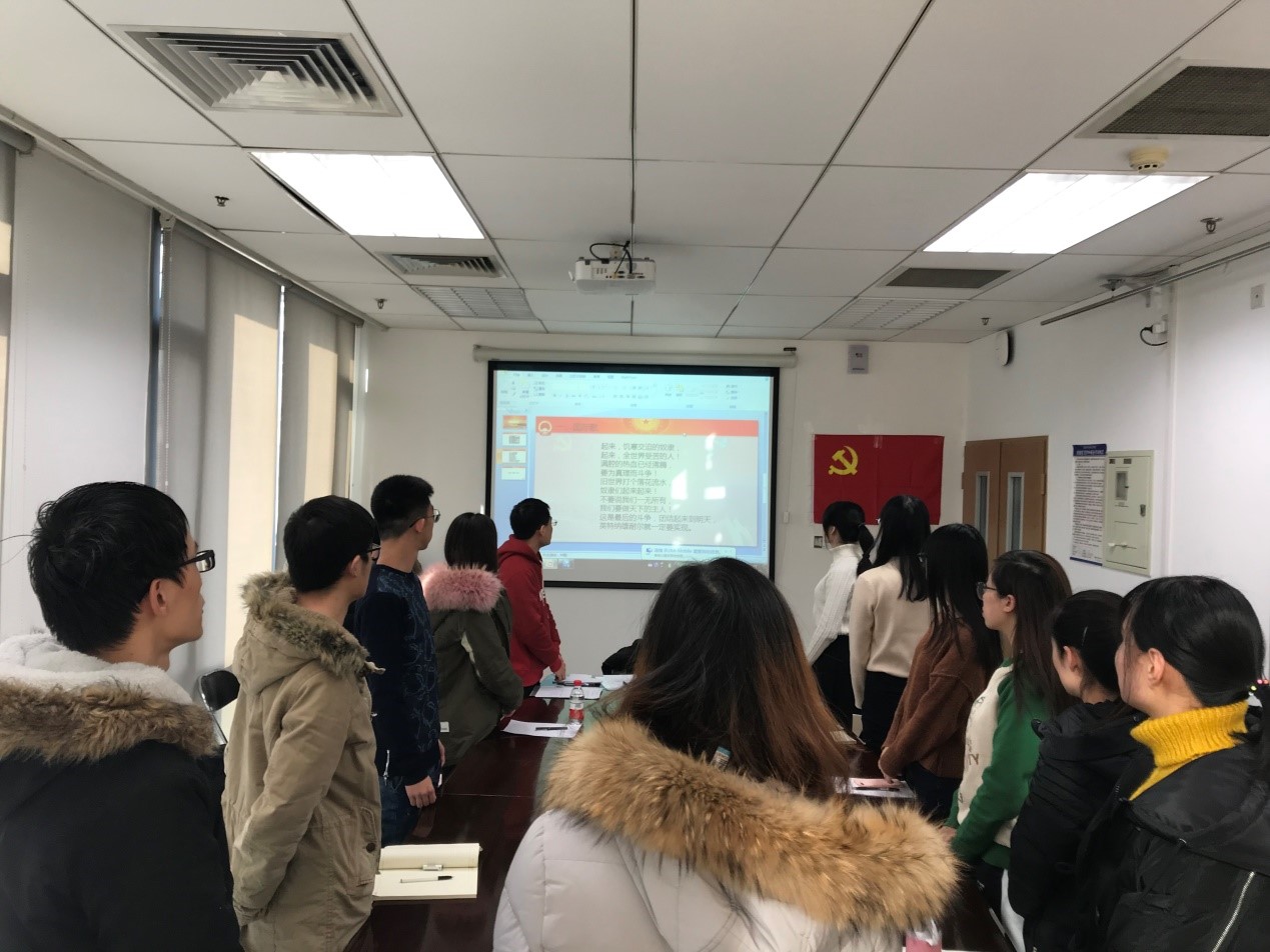 大会第一项,按照惯例,全体支部成员由党支书路尧带领唱国际歌,大家声音洪亮,情感饱满,在悠扬而激昂的旋律中感受共产主义理想的崇高与伟大。